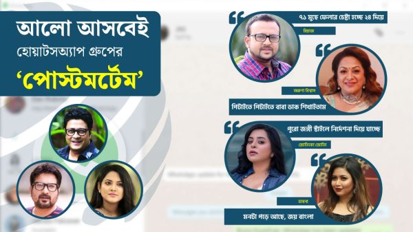 ভাইরাল হওয়া হোয়াটসঅ্যাপ গ্রুপ ‘আলো আসবেই’ নিয়ে চলছে নানা আলোচনা। সেই গ্রুপের অন্যতম এডমিন নায়ক রিয়াজের ছিল ৮ পরামর্শেই, শিল্পীদের চিহ্নিত করা হতো সেই গ্রুপে। রিয়াজের মেসেজ.. ‘প্রিয় বন্ধুগণ, সালাম