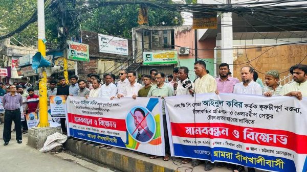 আনোয়ারা-বাঁশখালীর সংযোগস্থল সাঙ্গু নদীতে নির্মিত তৈলারদ্বীপ সেতুতে চাঁদাবাজি বন্ধ, সেতুর টোল প্রত্যাহার ও ইজারাদার আইনুল কবির কর্তৃক বাঁশখালীবাসীকে নিয়ে কুরুচিপুর্ণ বক্তব্য প্রতিবাদে মানববন্ধন ও বিক্ষোভ করেছে সামাজিক সংগঠন ‘আমরা বাঁশখালীবাসী’।